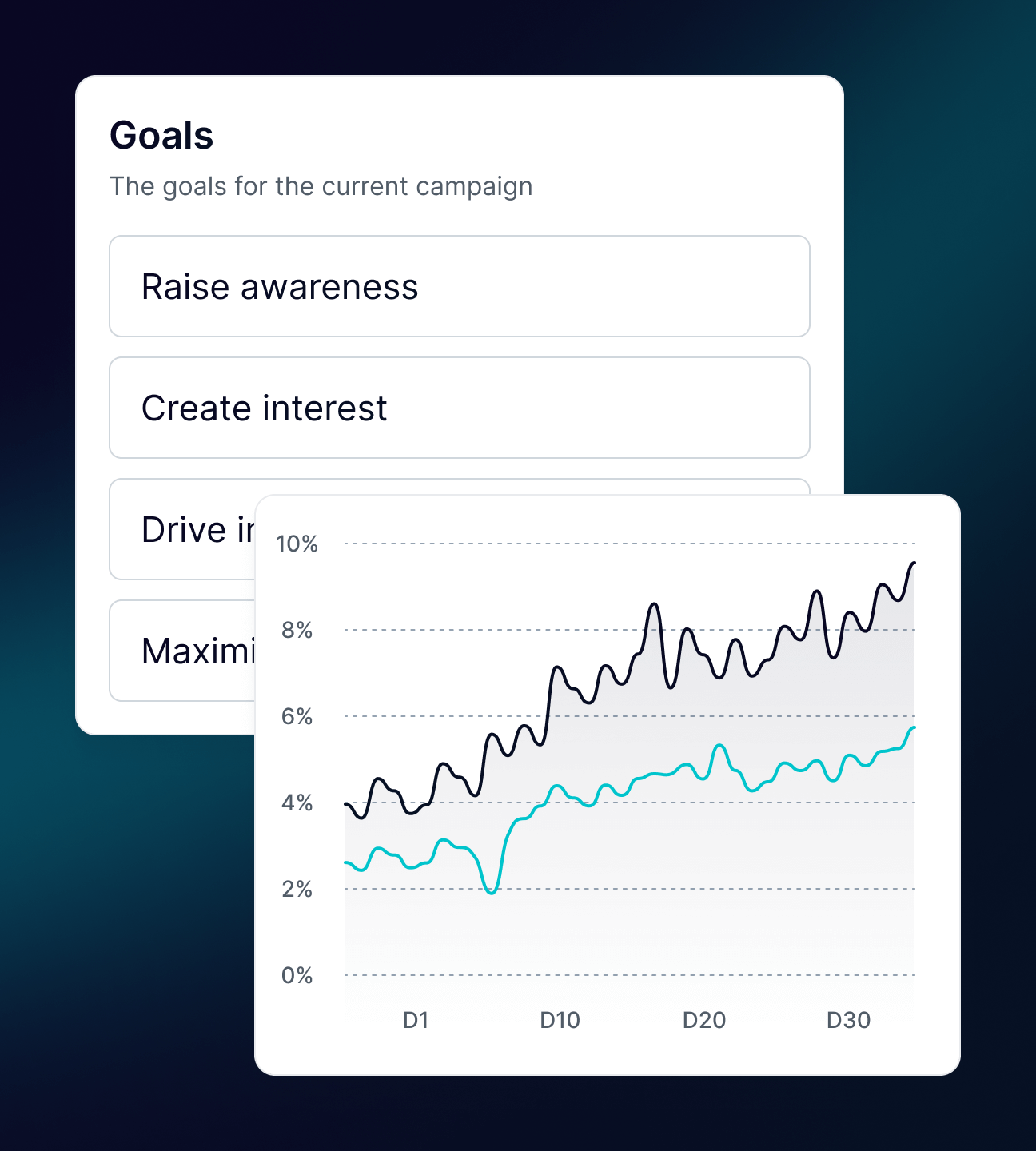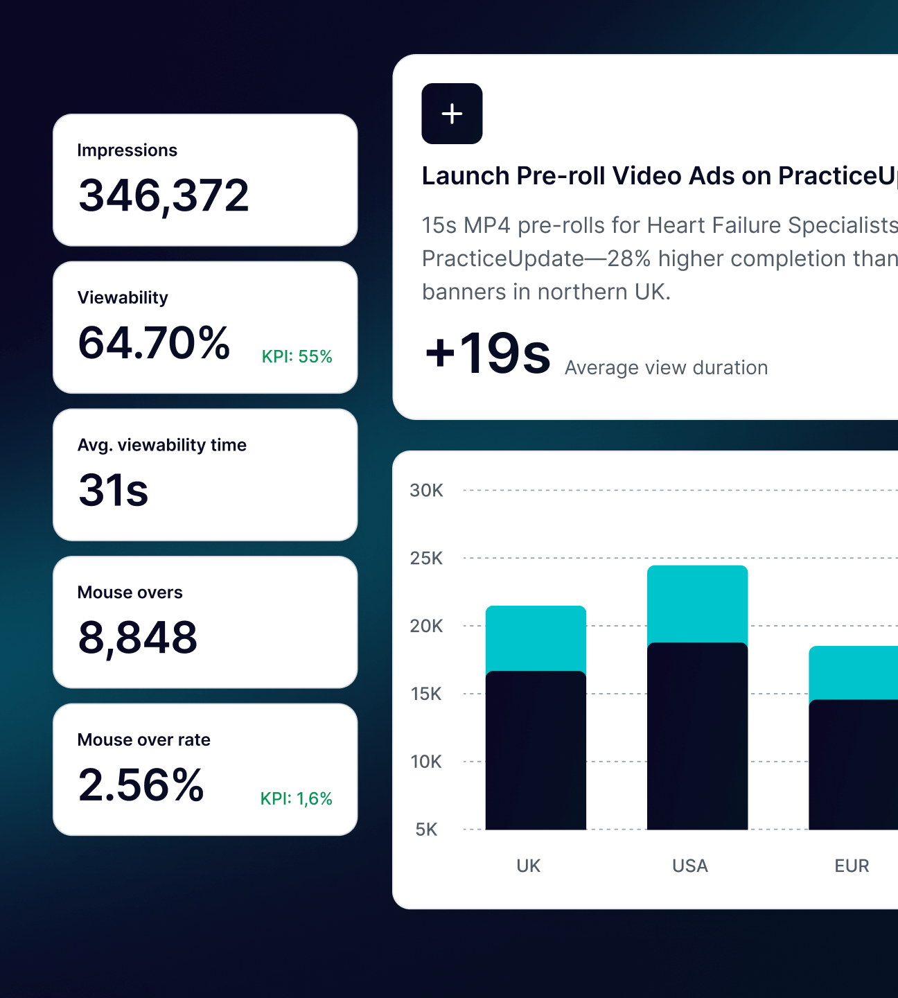 Data Factori uses advanced AI to continuously process, analyse, and visualize trends across a vast array of performance and behavioral metrics. These insights are intelligently grouped around key media objectives such as awareness, engagement and conversion, providing a dynamic, intuitive understanding of what’s working, where, and with whom